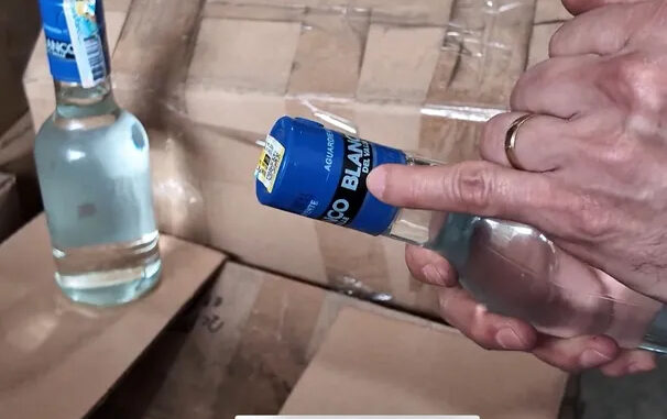 En el caso del aguardiente, el nombre ‘Blanco del Valle’ en la boca de la botella debe ser color blanco y no grisáceo, como se ha evidenciado en licores aprehendidos por el Grupo Operativo Anticontrabando. Igualmente, la expresión ‘Sin azúcar’ debe tener el color perfectamente definido y no presentar sombras.
