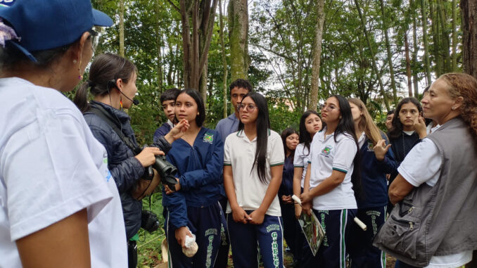 Posteriormente, la jornada se trasladó a la práctica con un recorrido guiado por los senderos ecológicos del CEA. Con los conocimientos recién adquiridos, los estudiantes pudieron aplicar las técnicas de avistamiento y disfrutaron de la observación de diversas especies, entre las que se destacan los gavilanes, tangaras, loros y otras más.