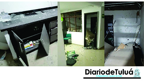 En la mañana de este martes una funcionaria de la Alcaldía de Riofrío y la Personera acudieron a la Subestación de Policía para inspeccionar los daños ocasionados por el artefacto explosivo.